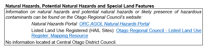 - Land features for example soil issues, whether it is certified or uncertified fill, the need for specific design foundations, old dredge tailings, all known hazards for example flooding, erosion, pylons fault lines or contaminations. If the property file has past flooding information, this will be included in the report. There is a natural hazard section within the LIM report that mentions ORD may have further information:
